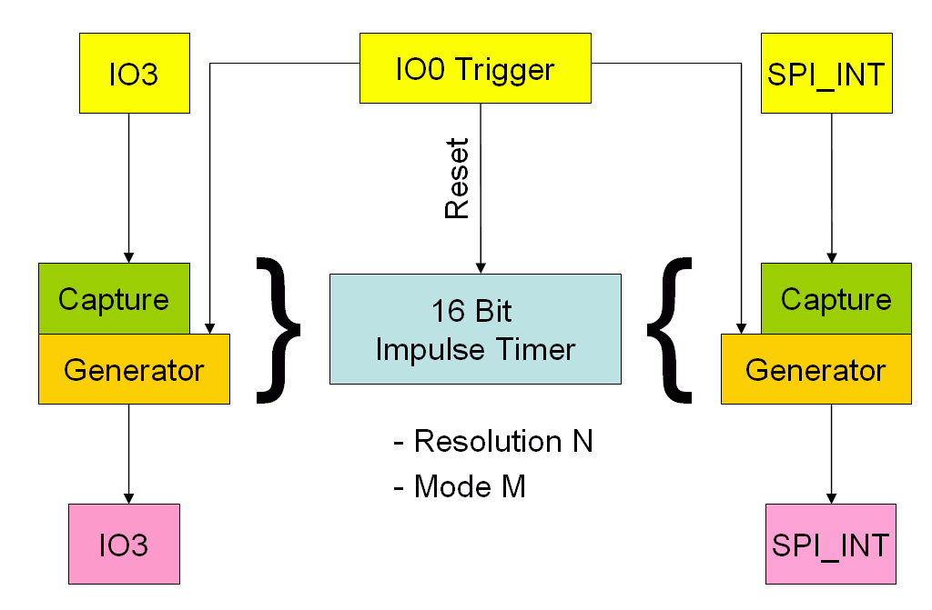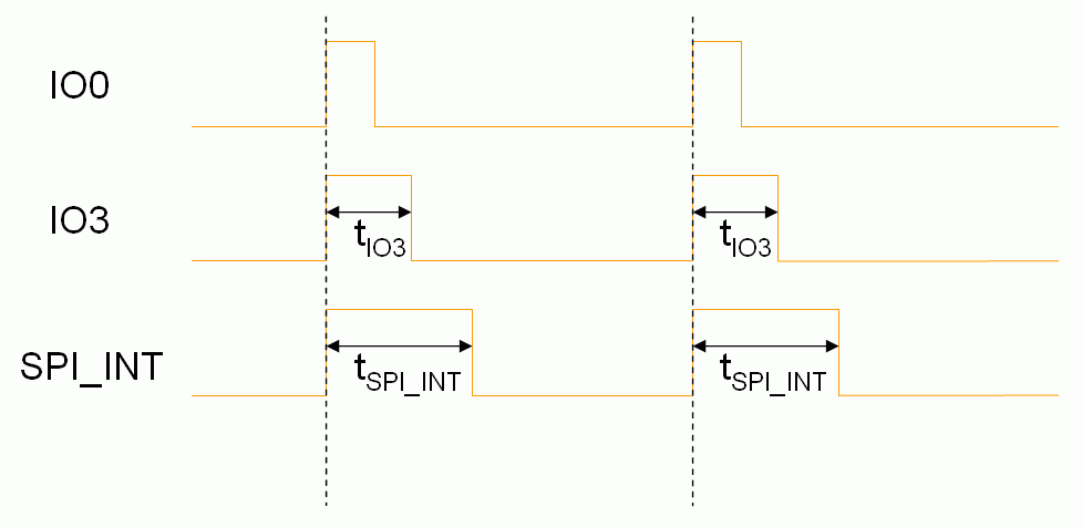 The impulse module is divided into two modes, the unsynchronized mode and the IO0 synchronized mode. Both, IO3 and SPI_INT, can either work in unsynchronized or in IO0 synchronized mode.